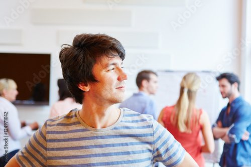 Panorama aus Silhouetten von Geschäftsleuten vor bunten Business Portraits