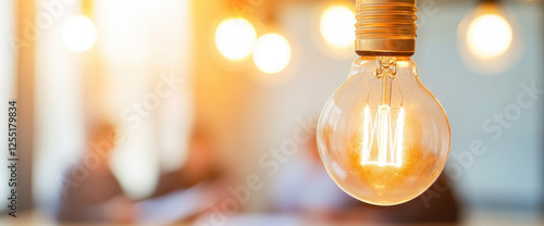 Hanging light bulbs with a glowing filament in a soft blurred ambiance