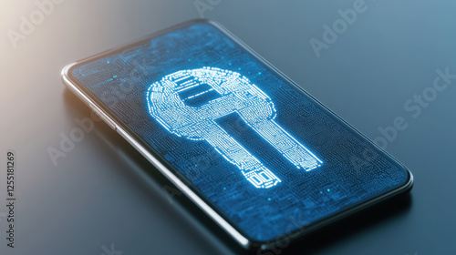 Smartphone illustrating a digital key on its display in modern concept art