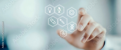 Innovative technology concept with a businessman touching a hologram of a rocket