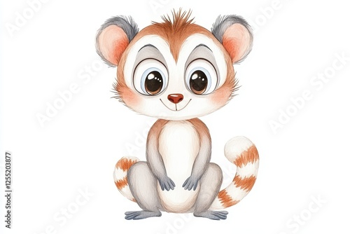 Cute watercolor cartoon of a happy lemur suitable for nursery decor