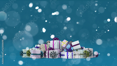 Geschenke mit Weihnachtsbaum vor Hintergrund