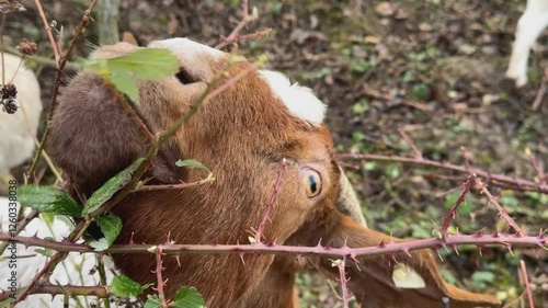Curious Goats Enjoying a Thorny Feast of Leaves and Berries on a Sunny Day in Slow-Motion