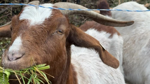 Goat Eating Leaves From Thorny Bush on a Farm in Slow-Motion