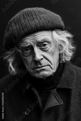 Black-and-white portrait of a Lebanese man with a thoughtful expression