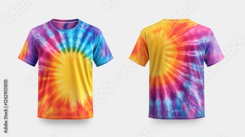 Colorful unisex tie-dye T-shirt mock-up templates with front and back views