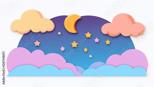 Soft pastel sky with clouds and sparkling twinkles in a whimsical design