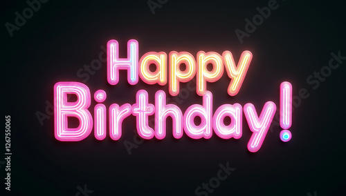Happy birthday neon text glowing in vibrant pink and yellow hues