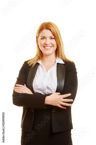 Lächelnde Geschäftsfrau mit verschränkten Armen