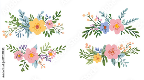 Collection of delicate floral arrangements with colorful flowers and greenery