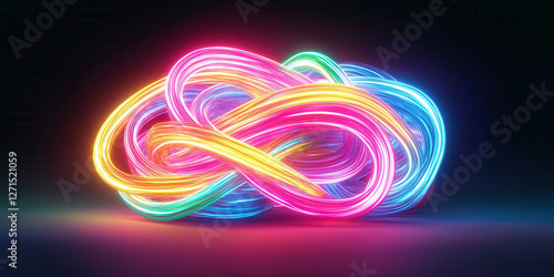 Glowing colorful light trails creating an abstract infinity shape on dark background