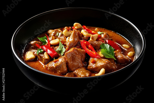 Delicious Indonesian Rendang Dish Served with Garnish and Steam