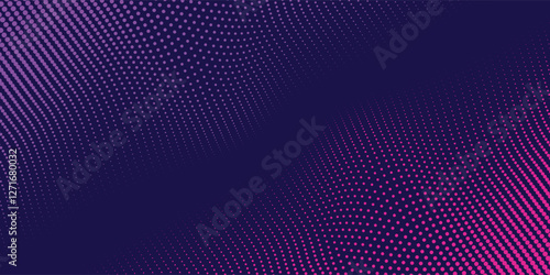 Wavy blue halftone pattern creating a flowing digital landscape with dotted grid on a blue background