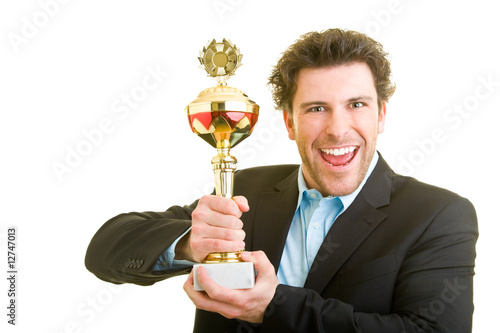 Bauarbeiter jubelt mit Schraubenschlüssel
