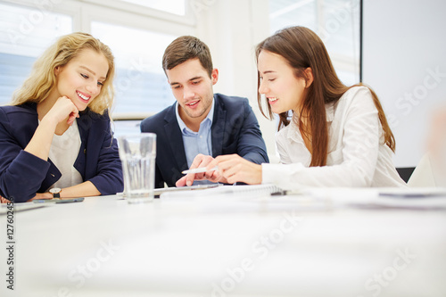 Geschäftsfrau liest Nachricht auf dem Tablet Computer