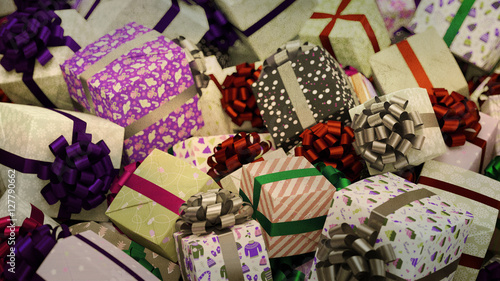 Bunte Geschenke zu Weihnachten auf einem Haufen