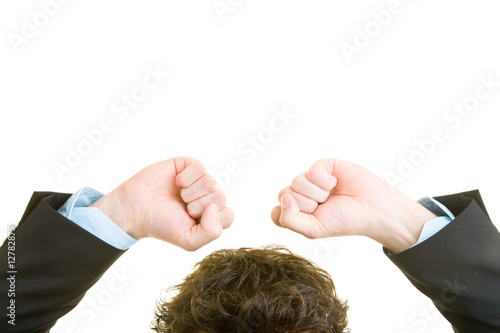 Bauarbeiter jubelt mit Schraubenschlüssel