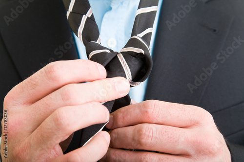 Hand mit Lupe sucht in Portraits als Umfrage und Marktforschung Konzept