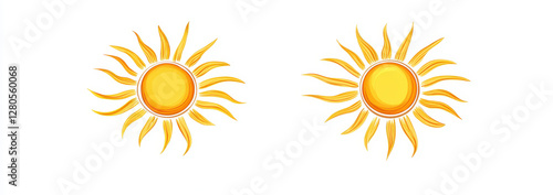 Bright sun artwork featuring two stylized yellow sun symbols