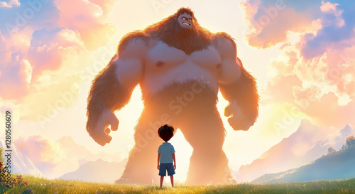 Determined climber reaches for a helping hand on a rugged mountain at sunset