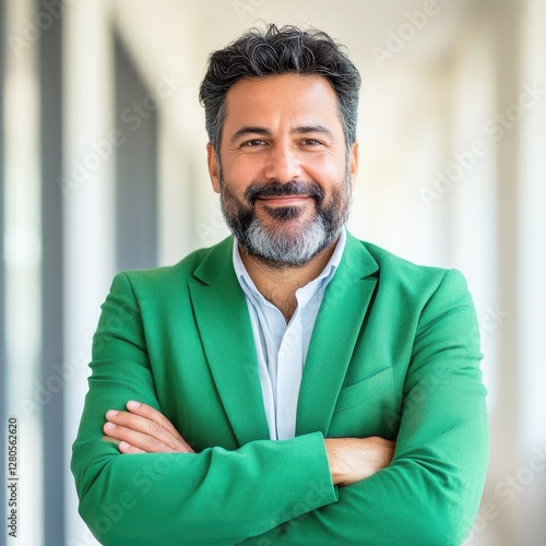 Portrait of a smiling Swedish environmental planner at work with a friendly demeanor