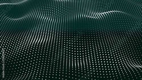 Abstract 3D wave pattern with flowing dots and particles in halftone design