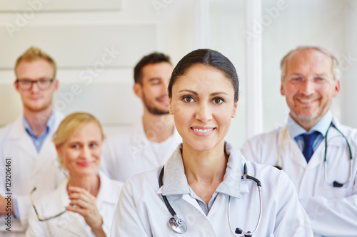 Panorama aus Silhouetten von Geschäftsleuten vor bunten Business Portraits