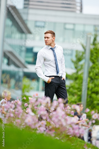 Smiling Russian IT specialist in his 30s dressed in business casual attire