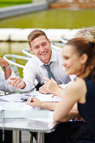 Geschäftsleute bei Besprechung am Tisch