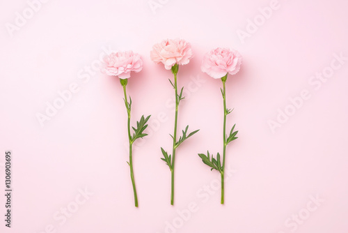 Three pink carnations arranged on a pastel pink background