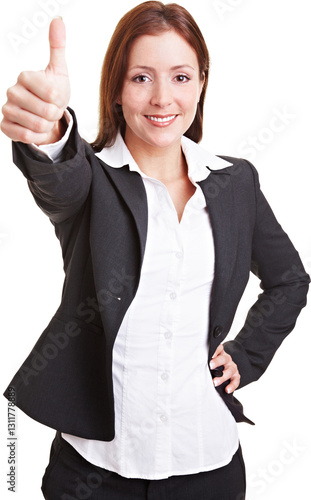 Zufriedene Geschäftsfrau hält Daumen hoch