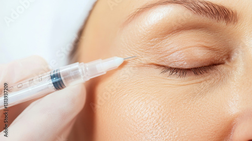 Woman receiving facial aesthetics treatment with precision and care at clinic