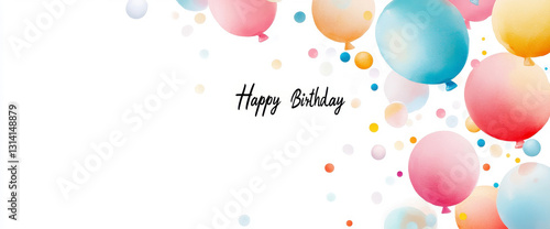 Playful and vibrant background with colorful balloons and confetti on a pastel blue backdrop.