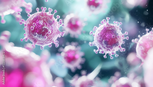 Colorful microorganisms representing viruses with detailed macro-level structures and textures