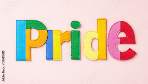 Rainbow stripes with bold 'Pride' text in colorful artistic style