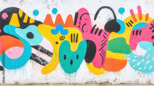 Colorful abstract graffiti art on a textured concrete urban wall