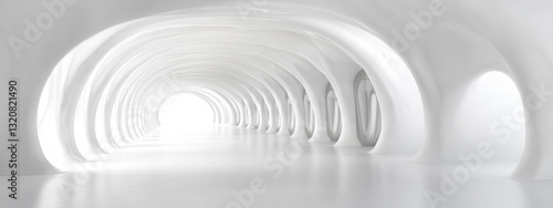 Abstract white tunnel with glowing neon lights creating a futuristic and modern visual experience with smooth curves and dramatic lighting effects perfect for artistic and creative designs