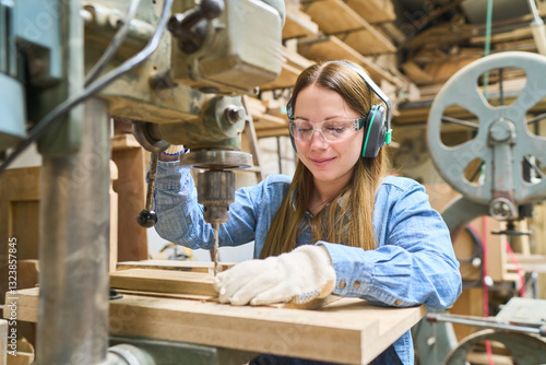 Experienced craftsman teaching young apprentice in a woodworking shop