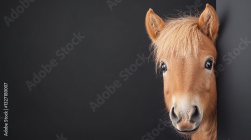 Adorable horse peeking curiously around a dark wall in a candid pose