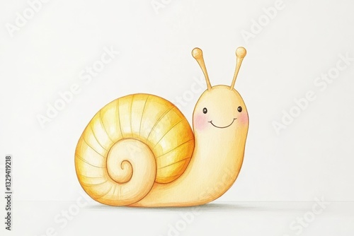 Cute happy snail cartoon in watercolor style, perfect for nursery decor with minimal and charming design