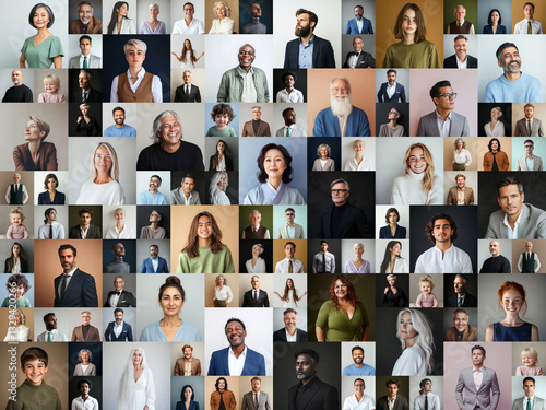 Collage of diverse people of various ages posing against subtle backgrounds