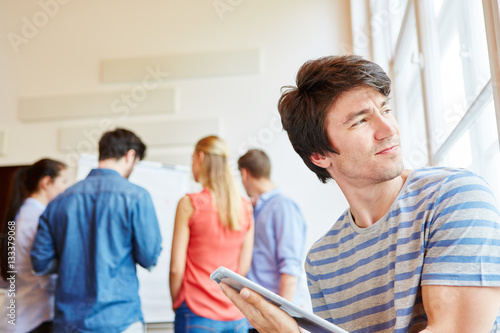 Panorama aus Silhouetten von Geschäftsleuten vor bunten Business Portraits