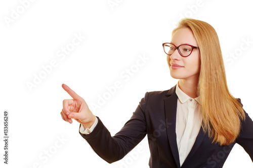 Business Frau berührt Touchscreen
