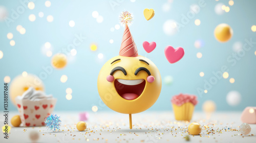 Adorable unicorn with colorful mane sitting surrounded by stars