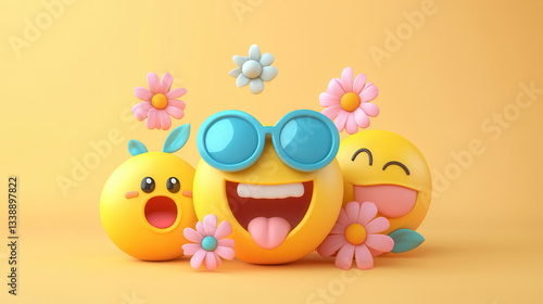 Bright emojis with colorful flowers displaying playful and joyful expressions
