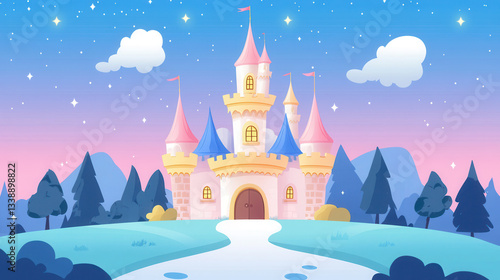 Soft pastel sky with clouds and sparkling twinkles in a whimsical design