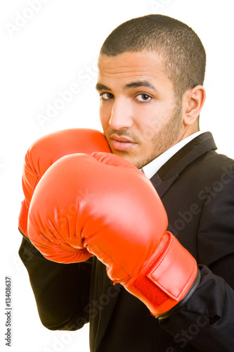 Manager mit Boxhandschuhen