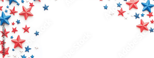 Red, white, and blue stars on a white background for festive occasions