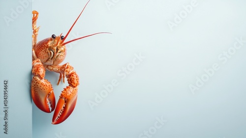 Professional studio portrait of a vibrant lobster, showcasing intricate details and vivid colors, set against a serene blue background.