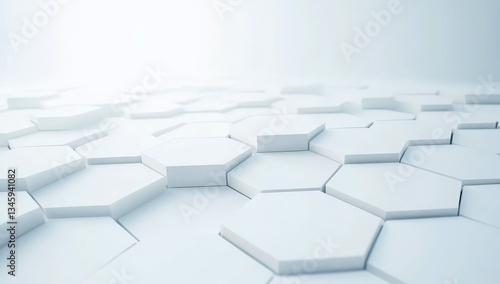 Modern white abstract background with geometric hexagonal 3D shapes in seamless pattern